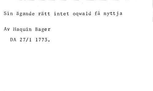 Sin ägande rätt intet oqwald få nyttja //// Av Haquin Bager DA 27/1 1773.