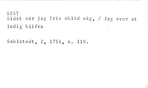 SIST //// Sidst när jag Iris oblid säg, / Jag svor at //// ledig blifva //// Sahlstedt, 2, 1751, s. 119.