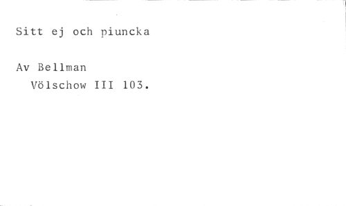 Sitt ej och piuncka //// Av Bellman //// Völschow III 103.