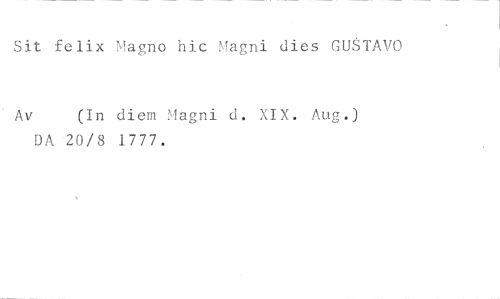Sit fe lix Magno hic Magni dies GUSTAV() //// Av (In diem Magni d. XIX. Aug.) //// DA 20/8 1777.
