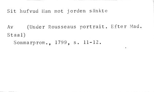 Sit hufvud Han mot jorden sänkte //// Av (Under Rousseaus portrait. Efter Mad. //// Staal) //// Sommarprom., 1799, s. 11-12.