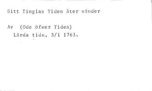 Sitt Timglas Tiden åter wänder //// Av (Ode öfwer Tiden) Lärda tidn. 3/1 1763.