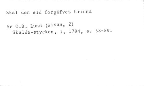 Skal den eld förgäfves brinna //// Av O.B. Lund (Wisan, 2) //// Skalde-stycken, 1, 1794, s. 58-59.