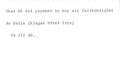 Skal då all grymhet bo hos all fullkomlighet //// Av Dalin (Klagan öfver Iris) //// VA III 80.,
