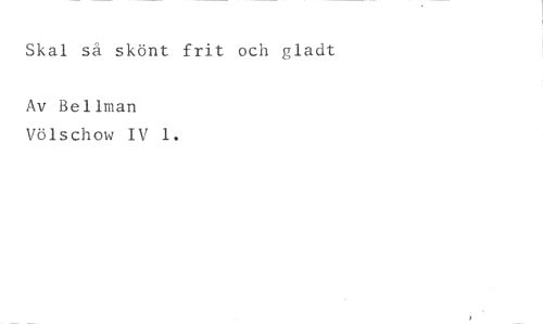 Skal så skönt frit och gladt //// Av Bellman //// Völschow IV 1.