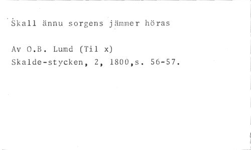 Skall ännu sorgens jämmer höras //// Av O.B. Lund (Til x) //// Skalde-stycken, 2, 1800,s. 56-57.