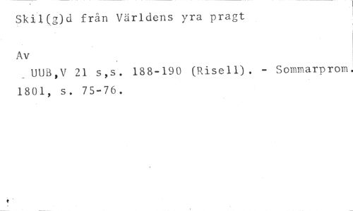 Skii(g)d från Världens yra pragt //// Av //// _UUB,V 21 s,s. 188-190 (Risell). - Sommarprom. 1801, s. 75-76.