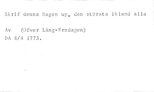 Skrif denna Dagen up, den största ibland alla //// Av (Öfwer Lång-Fredagen) //// DA 8/4 1773.