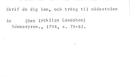 Skrif du dig lam, och träng til nådestolen //// Av (Den lycklige Landsbon) //// SCmmarprom., 1798, s. 79-82.