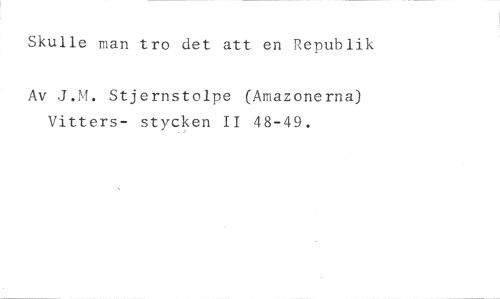 Skulle man tro det att en Republik //// Av J.M. Stjernstolpe (Amazonerna) Vitters- stycken II 48-49.