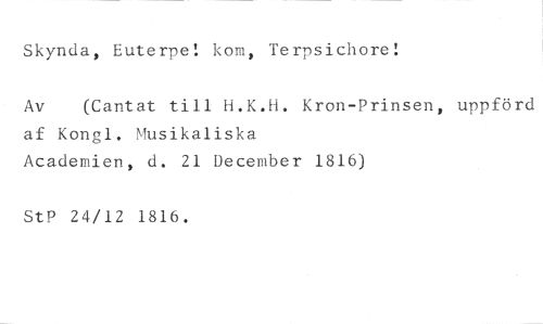 Skynda, Euterpe! kom, Terpsichore! //// Av (Cantat till H.K.H. Kron-Prinsen, uppförd //// af Kongl. Musikaliska //// Acadentien, d. 21 December 1816) //// StP 24/12 1816.