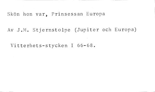 Skön hon var, Prinsessan Europa //// Av J.M. Stjernstolpe (Jupiter och Europa) Vitterhets-stycken I 66-68.