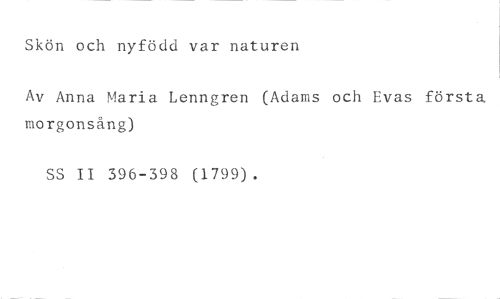 Skön och nyfödd var naturen //// Av Anna Maria Lenngren (Adams och Evas första morgonsång) //// SS II 396-398 (1799).