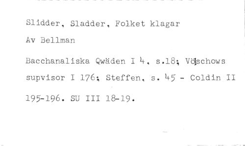 Slidder, Sladder, Folket klagar Av Bellman //// Bacchanaliska Qwäden 14, s.18; Völschows supvisor 1176:, Steffen, s. 45 - Coldin II //// 195-196. SU III 18-19.