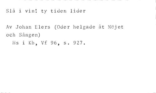 Slå i vin! ty tiden lider //// Av Johan Elers (Oder helgade åt Nöjet och Sången) //// Hs i Kb, Vf 96, s. 927.