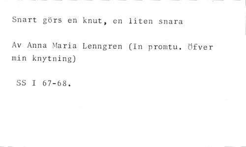 Snart görs en knut, en liten snara //// Av Anna Maria Lenngren (In promtu. min knytning) //// SS I 67-68.