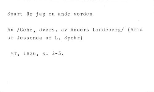 Snart är jag en ande vorden //// Av /Gehe, övers, av Anders Lindeberg/ (Aria ur Jessonda af L. Spohr) //// "T, 1826, s. 2-3.