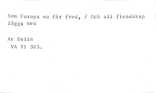 Som Europa nu får fred, / Och all fiendskap läggs ned //// Av Dalin //// VA VI 303.