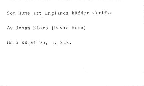 Som Hume att Englands häfder skrifva Av Johan Elers (David Hume) //// ils i Kå,Vf 96, s. 825.