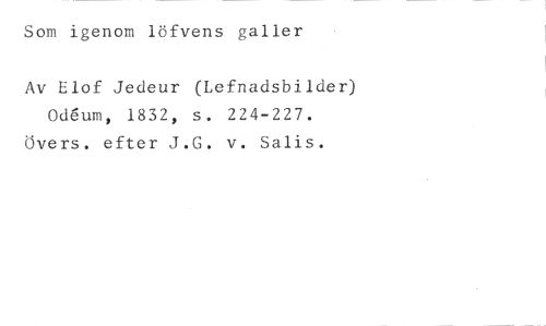 Som igenom löfvens galler //// Av Elof Jedeur (Lefnadsbilder) ()deum, 1832, s. 224-227. Övers. efter J.G. v. Salis.