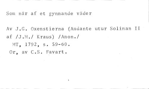Som när af et gynnande väder //// Av J.G. Oxenstierna (Andante utur Soliman II af /„7.M./ Kraus) /Anon./ 'IT, 1792, s. 59-60. //// Or, av C.S. Favart.