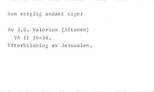 Som sorglig andakt tiger //// Av J.D. Valerius (Aftonen) VA II 36-38. //// Efterbildning av Jerusalem.