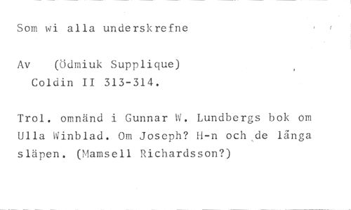 Som wi alla underskrefne //// Av ()dmiuk Supplique) //// Coldin II 313-314. //// Trol. omnänd i Gunnar 1'1. Lundbergs bok om Ulla Winblad. Om Joseph? H-n och de långa släpen. (Mamsell Richardsson?)