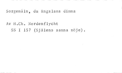 Sorgemåln, du ängslans dimma //// Av H.Ch. Nordenflycht //// SS I 157 (Själens sanna nöje).