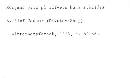 Sorgens bild på lifvets bana ställdes //// Av Elof Jedeur (Dryckes-Sang) //// Witterhetsförsök, 1825, s. 65-66.