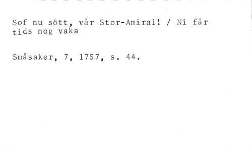Sof nu sött, vår Stor-Amiral! / Ni fär tids nog vaka //// Småsaker, 7, 1757, s. 44.