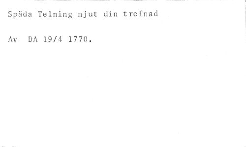 Späda Telning njut din trefnad //// Av DA 19/4 1770.