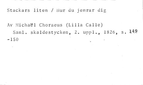 Stackars liten / dur du jemrar dig //// Av MichaUl Choraeus (Lilla Calle) //// Saml. skaldestycken, 2. uppl., 1826, s. 149 -150