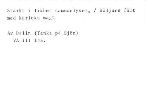 Starkt i likhet sammanlyser, / Böljans fält med kärleks magt //// Av Dalin (Tanka pä Sjön) VA III 145.