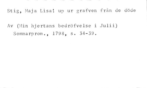 Stig, Maja Lisa! up ur grafven från de döde //// Av (Min hjertans bedröfvelse i Julii) Sommarprom., 1798, s. 34-39.