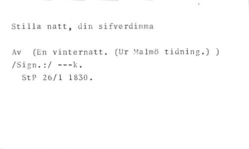 Stilla natt, din sifverdimma //// Av (En vinternatt. (Ur Malmö tidning.) ) /Sign.:/ ---k. //// StP 26/1 1830.