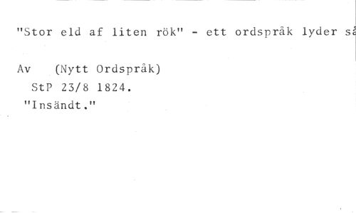 "Stor eld af liten rök" - ett ordspråk lyder s' //// Av (Nytt Ordspråk) //// StP 23/8 1824. "Insändt."