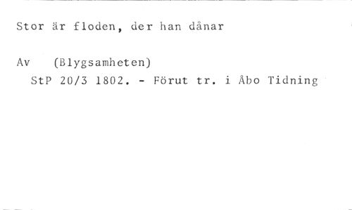 Stor är floden, der tean dånar //// Av (Blygsamheten) //// StP 20/3 1802. - Förut tr. i Abo Tidning