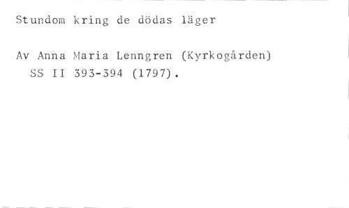 Stundom kring de dödas läger //// Av Anna Maria Lenngren (Kyrkogården) SS II 393-394 (1797).