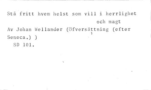 Stå fritt hvem helst som vill i herrlighet //// och magi //// Av Johan Wellander (Öfversättning (efter Seneca.) ) //// SD 101.