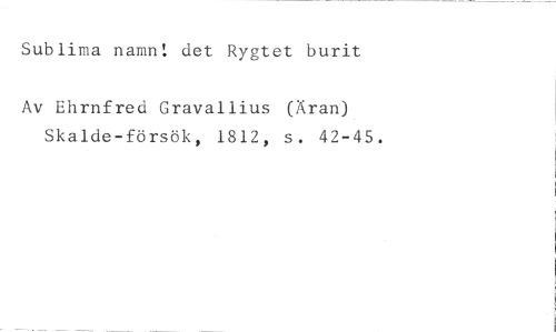 Sublima namn: det Rygtet burit //// Av Ehrnfred Gravallius (Äran) Skalde-försök, 1812, s. 42-45.