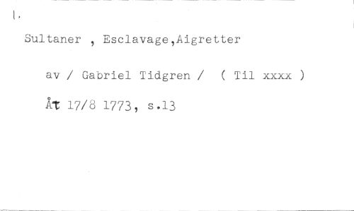 Sultaner , Esclavage,Aigretter //// av / Gabriel Tidgren / ( Til xxxx ) Åt 17/8 1773, s.13