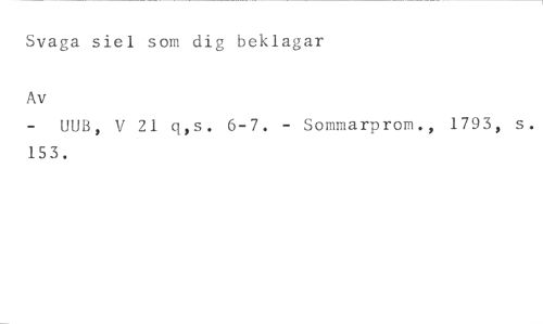 Svaga siel som dig beklagar //// Av //// - UUB, V 21 cl,s. 6-7. - Sommarprom., 1793, s. 153.