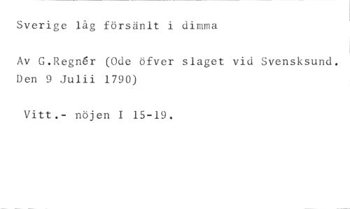 Sverige lag försänit i dimma //// Av G.Regn6r (Ode öfver slaget vid Svensksund. Den 9 Julii 1790) //// Vitt.- nöjen I 15-19.
