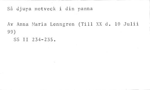 Så djupa notveck i din panna //// Av Anna Maria Lenngren (Till XX d. 10 Julii 99) //// SS II 234-235.