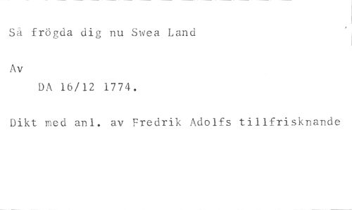 Sä frögda dig nu Svea Land //// Av //// DA 16/12 1774. //// Dikt med anl. av Fredrik Adolfs tillfrisknande