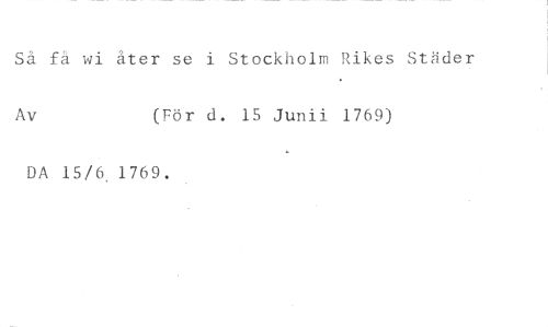 Så få wi åter se i Stockholm Rikes Städer //// Av (För d. 15 Junii 1769) //// DA 15/6. 1769.