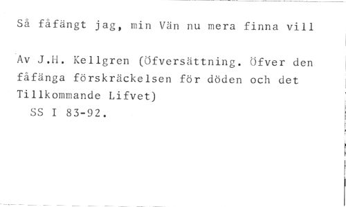Så fåfängt jag, min Vän nu mera finna vill //// Av J.H. Kellgren (Öfversättning. Öfver den fåfänga förskräckelsen för döden och det Tillkommande Lifvet) //// SS I 83-92.