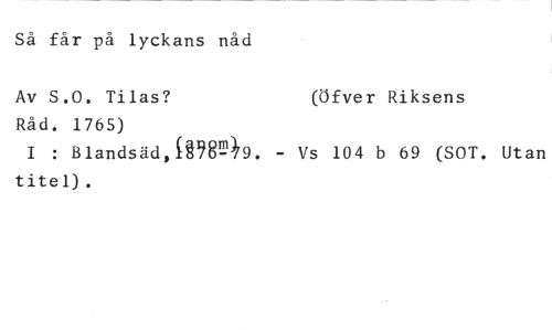 Så får på lyckans nåd //// Av S.O. Tilas? (öfver Riksens //// Råd. 1765) //// I : Blandsäd,ig98Th. - Vs 104 b 69 (SOT. Utan titel).