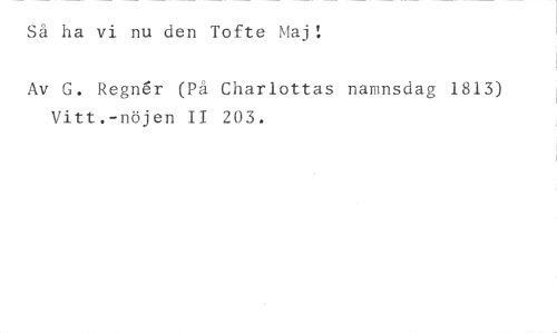 Så ha vi nu den Tofte Maj! //// Av G. Regn6r (På Charlottas namnsdag 1813) Vitt.-nöjen II 203.