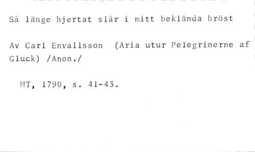 Så länge hjertat slår i mitt beklämda bröst //// Av Carl Envallsson (Aria utur Pelegrimerne af Gluck) /Anon. //// /MT, 1790, s. 41-43.